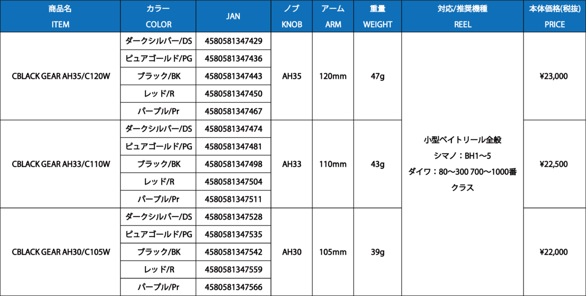 様々なエリア/ターゲット/釣法に対応するためハンドルノブデザイン/サイズを全て見直しました。